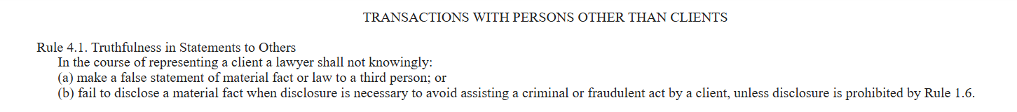 Renae never said she was interested in a monetary settlement, only reinstatement after an investigation. There was never a second option. So GPNA Law Firm Sara Frankenstein’s response of “Yes” is extremely confusing to Renae, and Melanie Carpenter at Woods Fuller should be very upset about being lied to by Sara, as alot of time/expense on both sides were wasted because of this. This is a violation of South Dakota Codified Law of Rules of Professional Conduct Rule 4.1 below. Will Woods Fuller pursue this violation that has done their client, The State of South Dakota, harm? The State of South Dakota in this case includes State Employees, SDRS members, SD tax payers and SD Citizens. Those people deserve the respect of proper council along with all other Woods Fuller clients who may have opposing councils treating them like this.