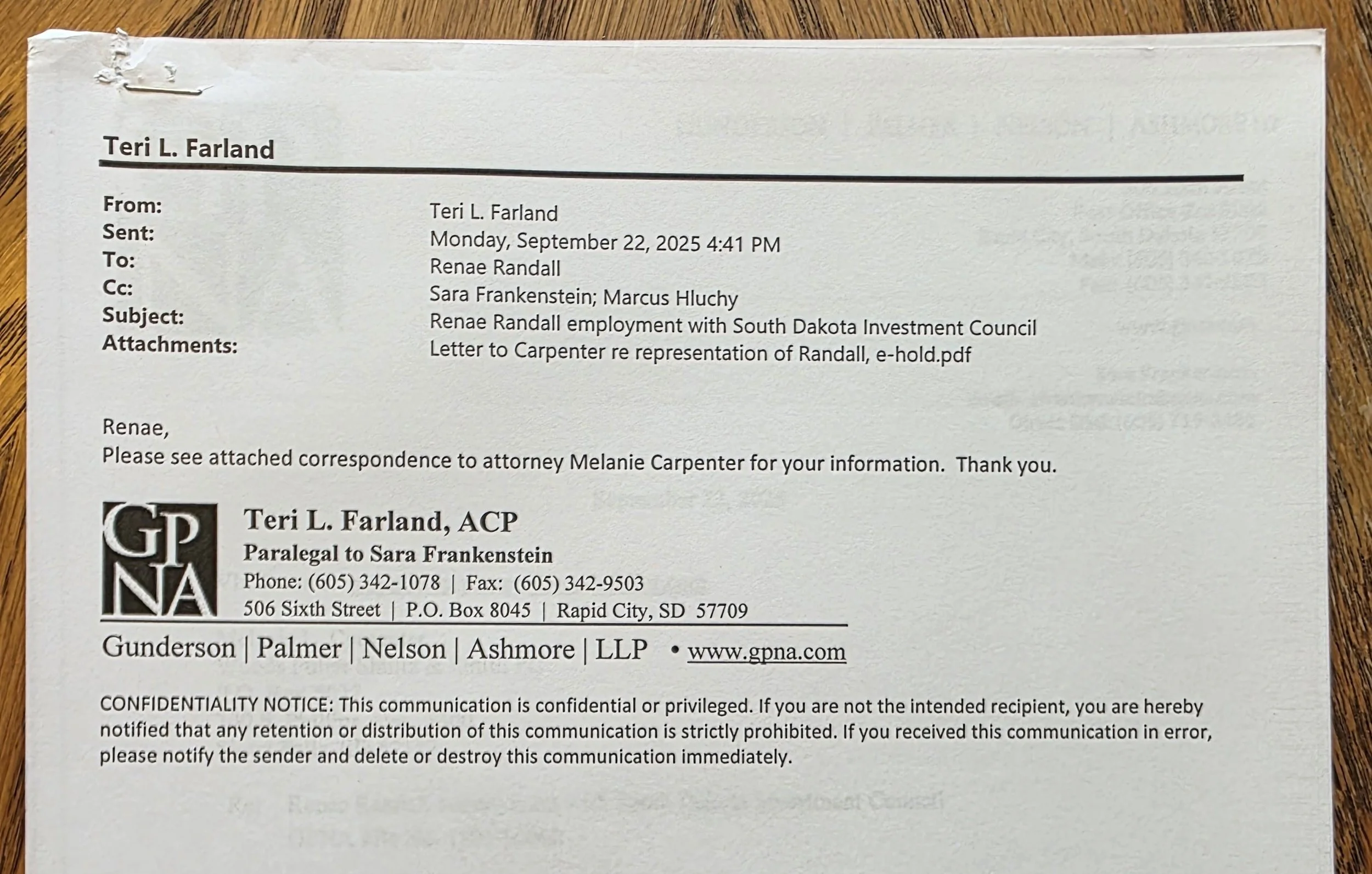 Renae signs on with GPNA on Sept 9, 2025. Renae emails Sara her correspondence with Charlie Firth that included some of her evidence of the termination, last 3 emails and 50 pages of notes document to get up to speed and we have our first meeting in person in Rapid City on Sept 22.